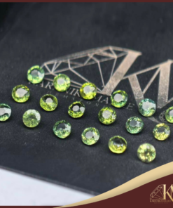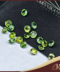พลอยเขียวส่อง สีสด รูปทรงกลม ขนาด: 3.0 – 3.2 มม.น้ำหนักรวม 3.00 กะรัต จำนวน: 18 เม็ด ราคากล่องละ 800 บาท