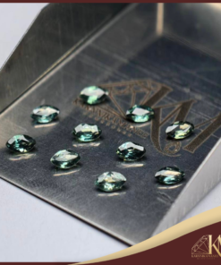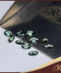 พลอยเขียวส่อง (Green Sapphire) รูปทรงมาคี ขนาด: 5 x 3 มม.น้ำหนักรวม 2.275 กะรัต จำนวน: 10 เม็ด / กล่อง