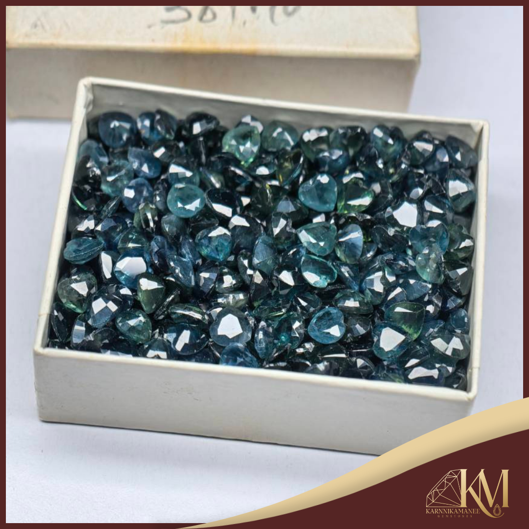 พลอยชุดนี้จะมีประกายที่เห็นสีน้ำเงินเข้มสลับกับเหลือบเขียว (Teal Sapphire) ซึ่งกำลังเป็นที่นิยมมากในงานออกแบบจิวเวลรี่สมัยใหม่ โดยเฉพาะการนำรูปทรงหัวใจมาทำเป็นจี้หรือแหวนแนวน่ารักๆ แต่ยังคงความหรูหราของตระกูลแซฟไฟร์ไว้พลอยชุดนี้จะมีประกายที่เห็นสีน้ำเงินเข้มสลับกับเหลือบเขียว (Teal Sapphire) ซึ่งกำลังเป็นที่นิยมมากในงานออกแบบจิวเวลรี่สมัยใหม่ โดยเฉพาะการนำรูปทรงหัวใจมาทำเป็นจี้หรือแหวนแนวน่ารักๆ แต่ยังคงความหรูหราของตระกูลแซฟไฟร์ไว้